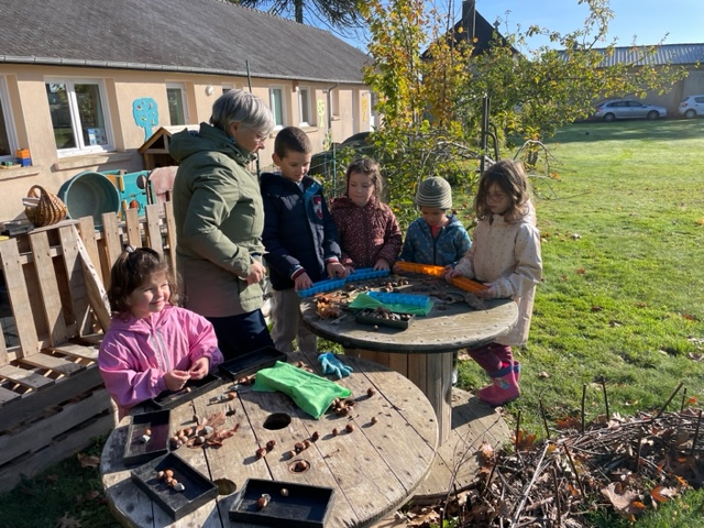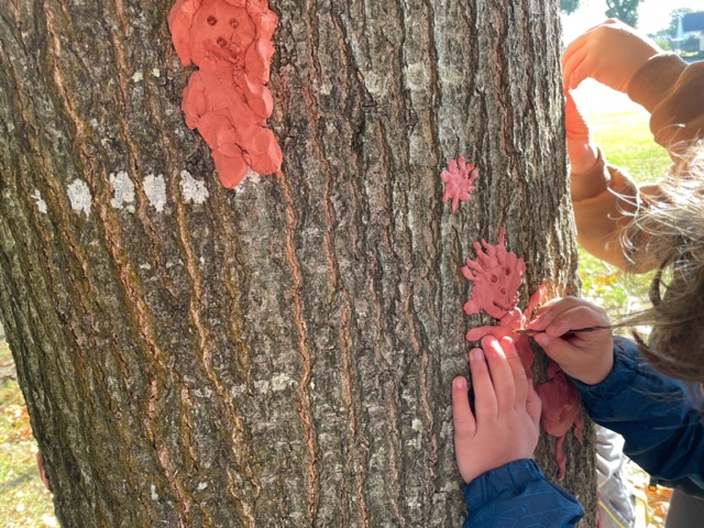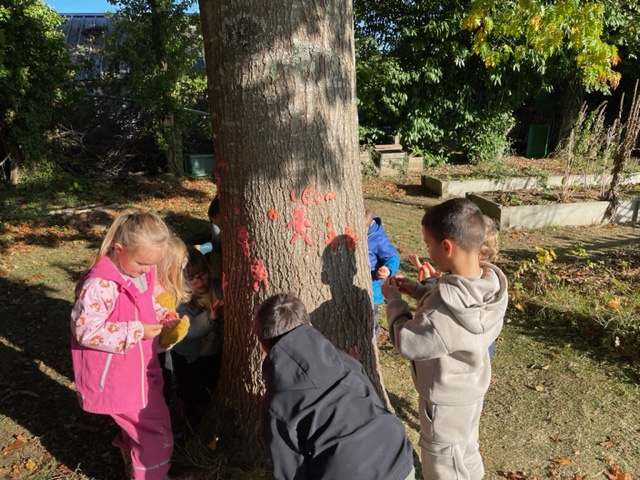 Pour finir la période, nous avons fait une grande école dehors avec les CP et CE1. Autour du thème de l’automne, nous avons fait des créations et des jeux : land art à la manière d’Arcimboldo, modelage sur le tronc du grand chêne, empreinte de feuilles et chasse aux trésors ( fruits et feuilles des arbres). Autant de manières différentes de profiter de tous les plaisirs de l’automne … Bonnes vacances !