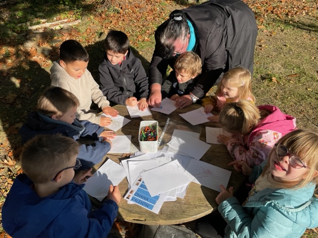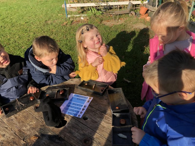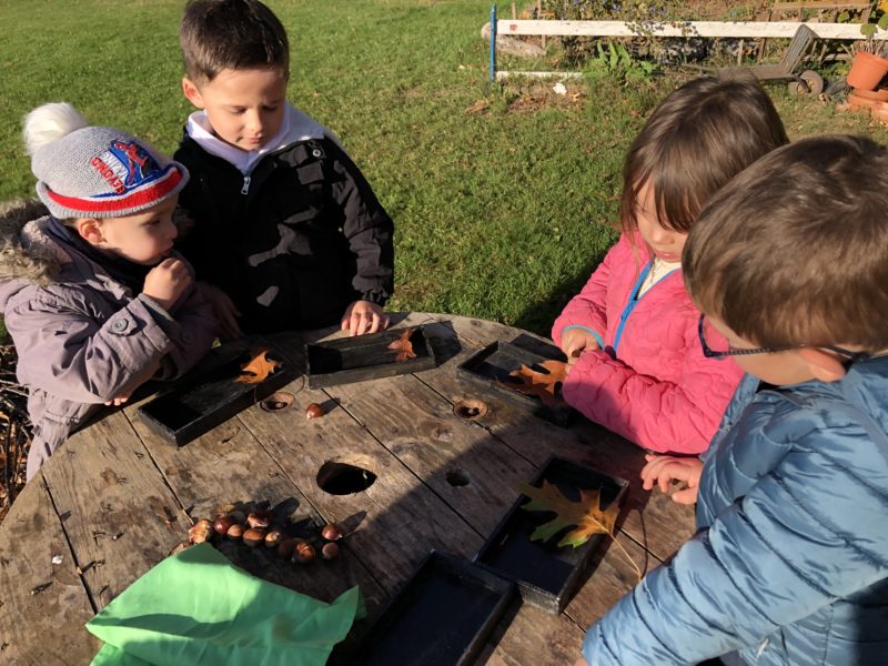 Pour finir la période, nous avons fait une grande école dehors avec les CP et CE1. Autour du thème de l’automne, nous avons fait des créations et des jeux : land art à la manière d’Arcimboldo, modelage sur le tronc du grand chêne, empreinte de feuilles et chasse aux trésors ( fruits et feuilles des arbres). Autant de manières différentes de profiter de tous les plaisirs de l’automne … Bonnes vacances !