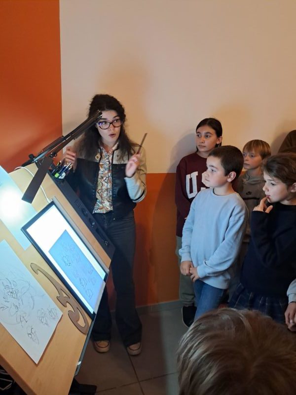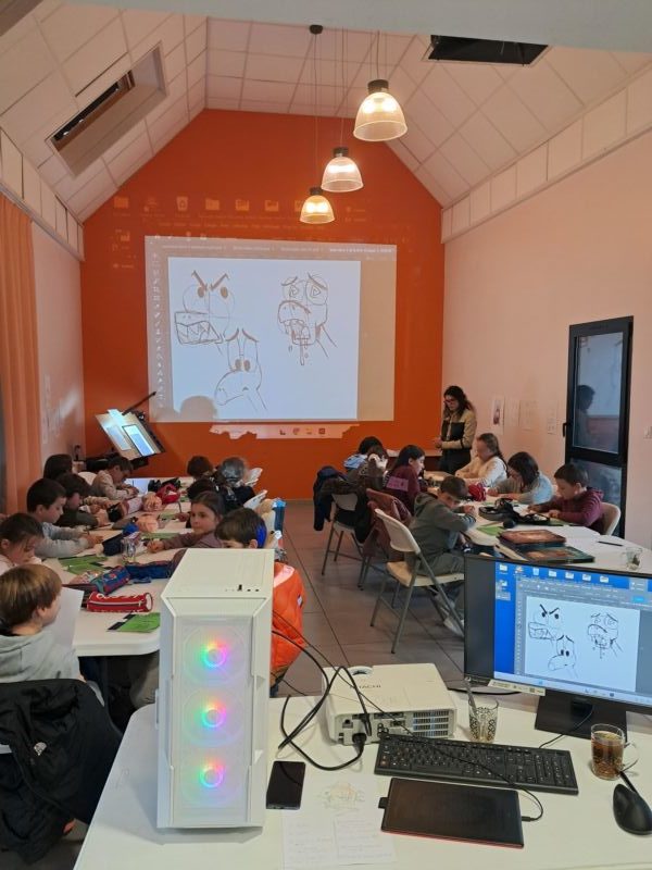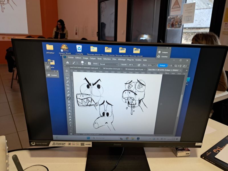 Ensuite, elle nous a montré la technique pour dessiner une tête de dinosaure. C’était trop bien !