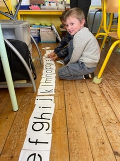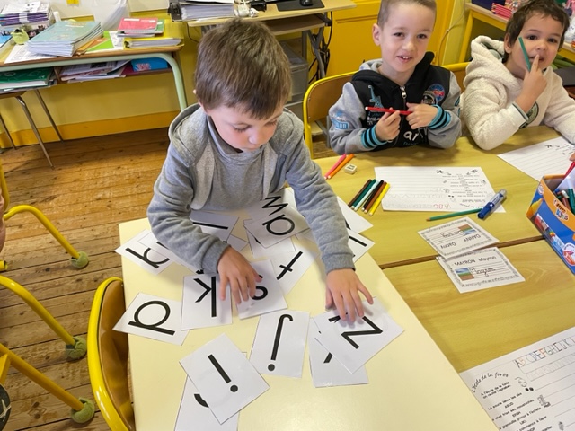 Reconstituer l’alphabet en script, reconnaître les lettres, les associer aux lettres en capitales. Tout un travail !