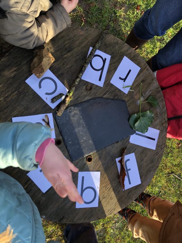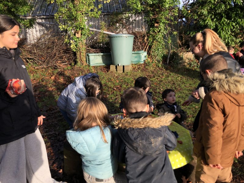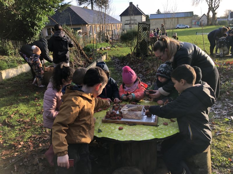 Pour notre dernière journée avant les vacances, nous avons été en classe dehors avec les CP et CE1. Pour commencer, nous avons observé les indices qui annoncent le changement de saison : les branches nues, le lierre, la météo… Nous avons réalisé 3 ateliers : morpion et puissance 4 ( pour apprendre à repérer les lignes), phonologie grandeur nature ( rechercher des matériaux commençant par les lettres) et lancement de l’atelier terre avec la création d’un bonhomme des bois. A la fin, nous nous sommes bien réchauffés avec une tisane de romarin. Bonnes vacances !
