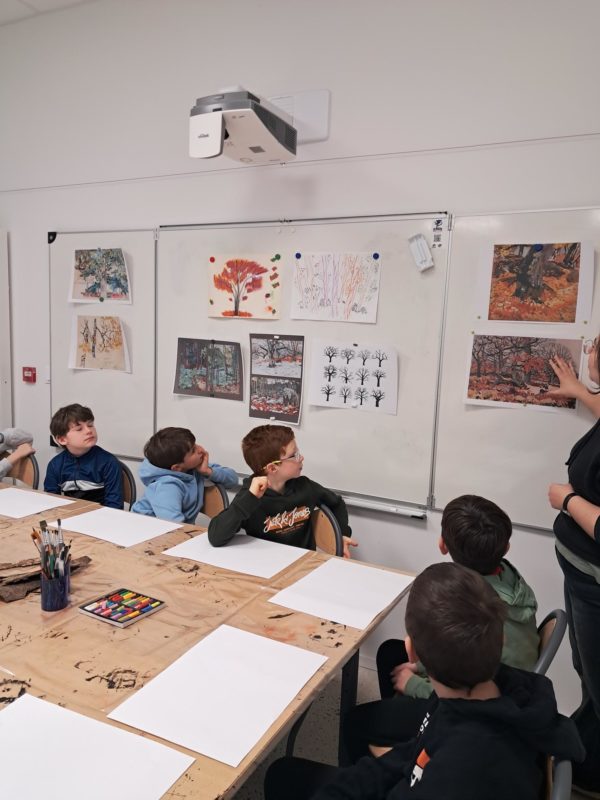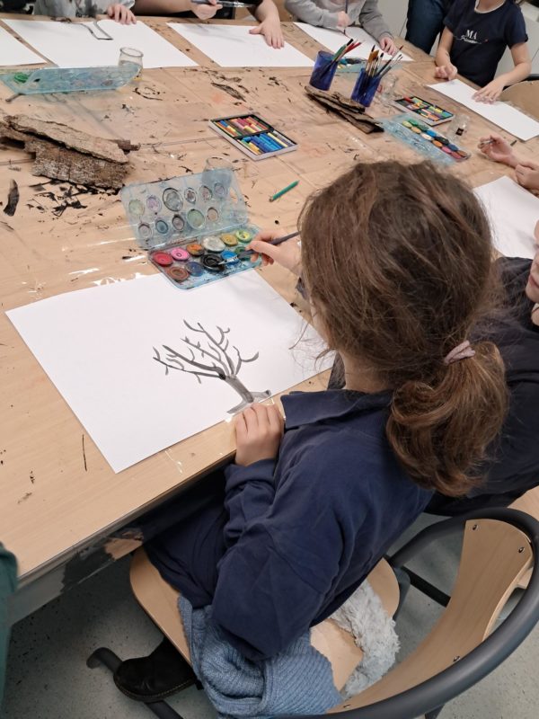 Nous avons débuté par un atelier artistique avec Alexandra. Après avoir observé diverses œuvres de l’artiste Mathurin Méheut, nous avons réalisé un arbre en peinture aquarelle et l’avons agrémenté à l’aide de crayons pastels. Nous avons adoré cette expérience artistique.