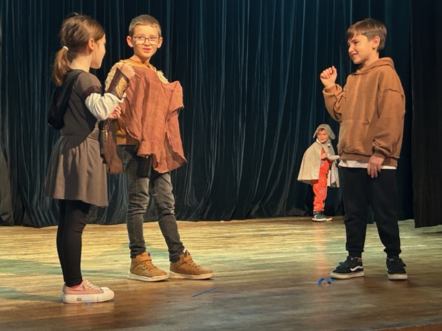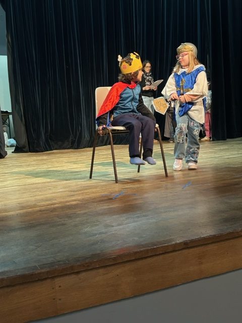 Tout ce travail a permis de travailler la mémoire, le langage oral, l’expression orale, les émotions, la posture, la voix, les mimes, les périodes de l’Histoire …