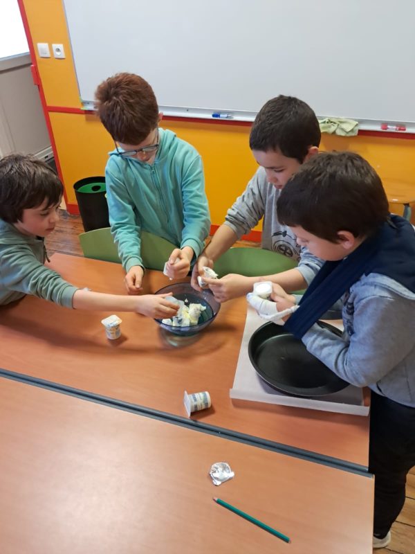 Après une lecture attentive de la recette, les élèves ont nommé les ustensiles et ingrédients, puis tout le monde a retroussé ses manches !
