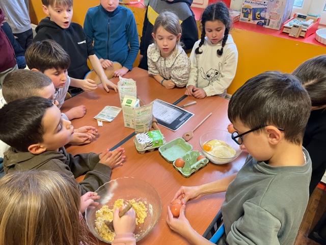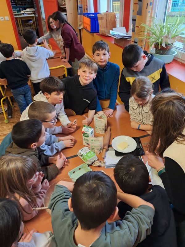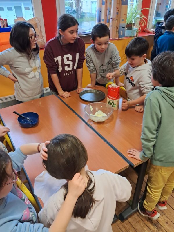 Comme les élèves de maternelle, les élèves de primaire ont réalisé deux galettes des rois à la frangipane !
