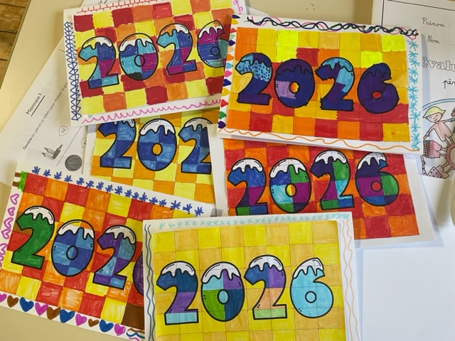 En ce début d’année, nous avons travaillé sur les écrits du courrier en production d’écrit, et sur les couleurs chaudes et les couleurs froides pour réaliser une carte de vœux.