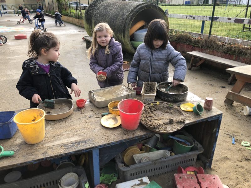 – 1 pot de yaourt – 2 pots de sucre – 3 pots de farine – 3 œufs – 1/2 pot d’huile – 1/2 sachet de levure… ensuite on peut ajouter du chocolat, de la vanille, des fruits… Vous avez aussi la version « bac à sable » Plus salissant mais très créative !