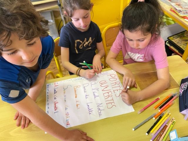 La « portes ouvertes » à l’école fut l’occasion de travailler sur un nouveau type d’écrit : l’affiche.