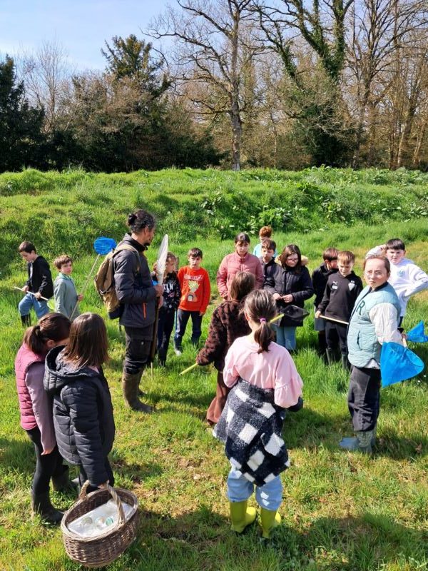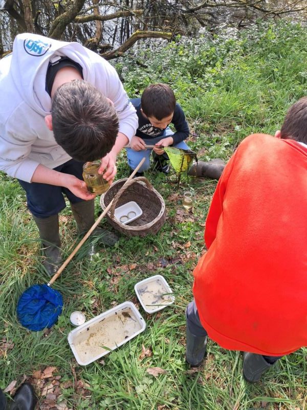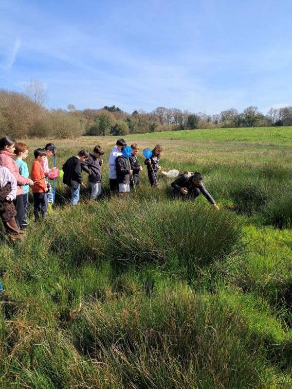 Munis d’épuisettes et de boîtes d’observation, les élèves se sont installés autour de la mare afin de pêcher et d’identifier les différentes espèces qui y vivent. Avec beaucoup d’enthousiasme et de curiosité, ils ont réussi à recenser pas moins de 12 espèces différentes ! Insectes aquatiques, larves et petits crustacés ont été observés avec attention, puis relâchés dans leur milieu naturel après identification.