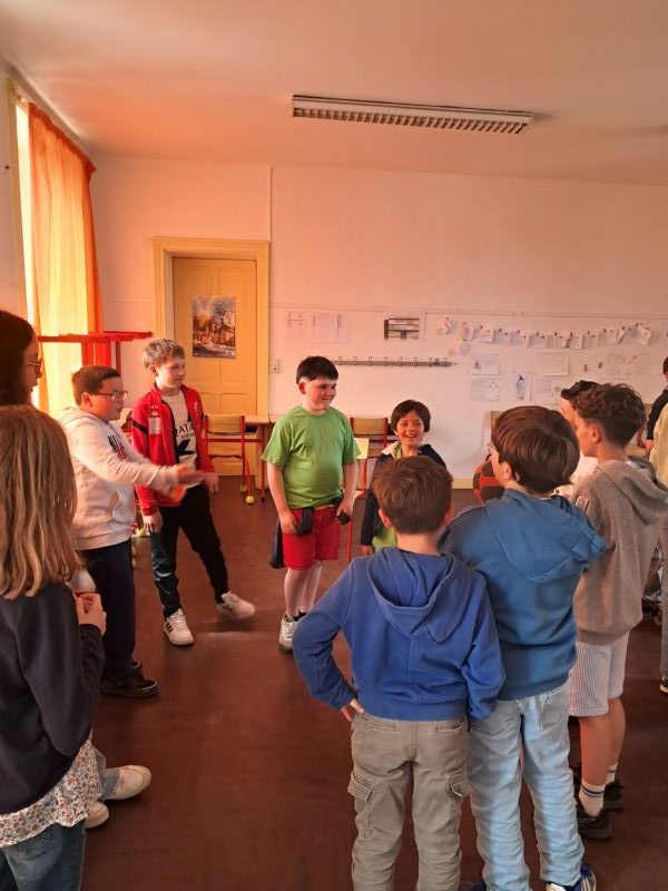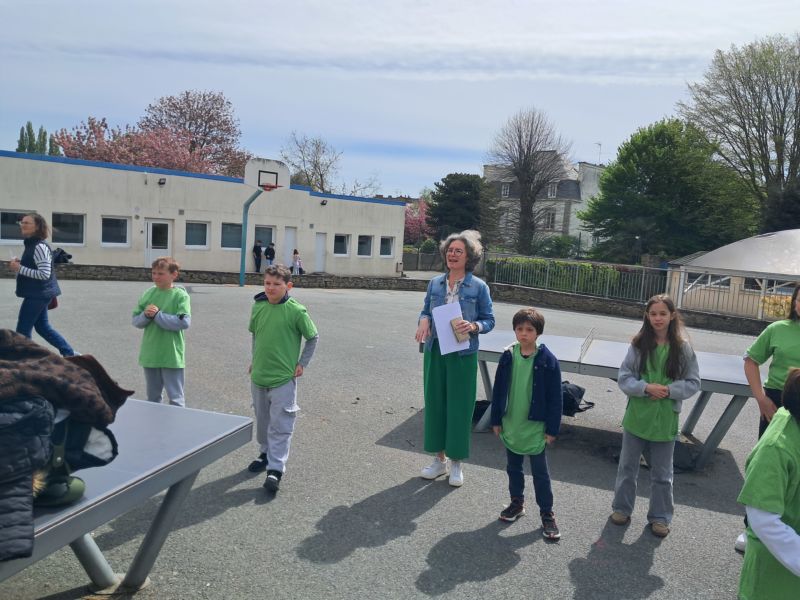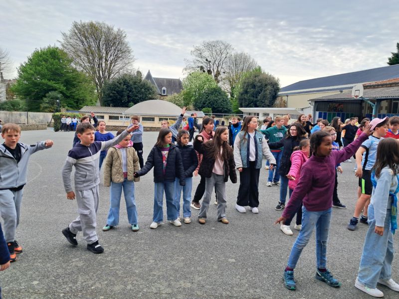Après avoir été accueilli par Mme Garzuel et dansé le flash mob, nous avons débuté nos ateliers linguistiques. Au programme: jeux, danses et chants en anglais, espagnol et en allemand, animés par des lycéens de Notre-Dame et des enseignants de St Do. Plusieurs écoles du secteur étaient présentes (St Léonard, Plésidy, Plougonver, Duault) dans le cadre de la liaison CM-6e.