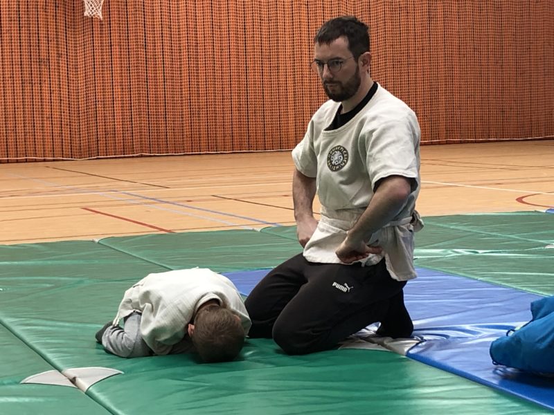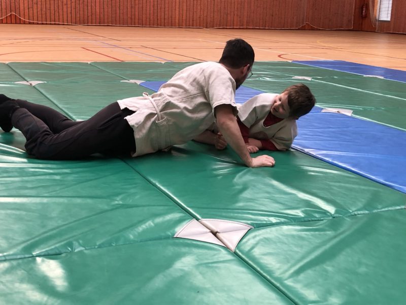 Nous avons retrouvé Tugdual à la salle de sport pour commencer le cycle de Gouren. Avant de débuter les jeux de lutte, nous avons fait attentivement les exercices d’échauffement des différentes articulations : nuque, poignets, coudes, chevilles… Ensuite les premiers jeux de lutte nous ont permis de rentrer en contact avec les autres et de poser le cadre de cette discipline ( respect de l’autre et de soi, ne pas faire mal, demander le consentement…). Vivement mardi prochain…