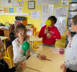 Actuellement nous travaillons sur l’air … Qu’est-ce que c’est ? Où est-il ? A t-il une masse ? Est-ce qu’on le voit ? Est-ce qu’on peut le toucher ? L’enfermer ? Nous avons réalisé des expériences en classe par petits groupes.