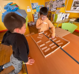 Actuellement nous travaillons sur « l’espace », et notamment l’espace classe. Comment le représenter ? Nous avons appris à distinguer une maquette, un plan, une photographie. Les élèves ont réalisé la maquette de la classe en kaplas et en légos.