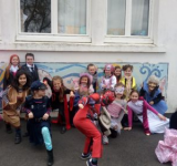 Le mardi 20 mars, nous avons défilé dans les rues de Pédernec. Nous avions mis nos plus beaux déguisements ! Pour terminer, nous avons mangé une bonne crêpe confectionnée par les mamans.