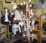 Voici notre « Forêt ». Nous avons dessiné des personnages à la manière de Giacometti, il sont suspendus dans une branche et décorent notre classe.