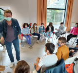 Aujourd’hui, les classes de primaire ont commencé le cycle de musique avec Aude sur le thème de la tolérance. Après avoir chanté, les enfants ont battu la mesure avec des noix de coco.